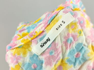 Sukienka Sinsay – rozmiar S - Krój kopertowy z wiązaniem w talii (paski do przewiązania po bokach). - Dekolt w kształcie litery V. - Krótkie, szerokie rękawy z lekką falbaną. - Dół z falbanami, le...