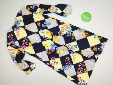 Sukienka damska z kolorowym, artystycznym nadrukiem - Krój: luźny, odcinana w talii z marszczeniem, krótkie rękawy, okrągły dekolt - Długość: midi - Materiał: 95% poliester, 5% elastan – lekka tka...
