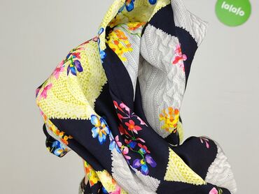- Wzór: patchwork z rombów w kolorach granatu, żółci i szarości z kwiatowymi motywami w intensywnych barwach (róż, żółty, niebieski, pomarańczowy)