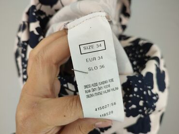 Sukienka ORSAY - Model: mini, z długim rękawem - Fason: lekko taliowana, z delikatnymi marszczeniami przy dekolcie i rękawach - Wzór: gęsty, kwiatowo-roślinny na granatowym tle - Dekolt: w kształc...