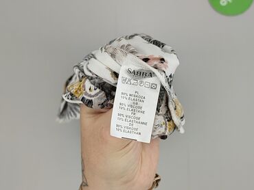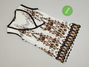 Bluzka damska bez rękawów SZACHOWNICA, rozmiar L. - Kolor: biały z czarnym, drobnym wzorem strzałek - Fason: lekko luźny, z wiązaną kokardą/szalikiem przy dekolcie - Materiał: 100% wiskoza (miękka...