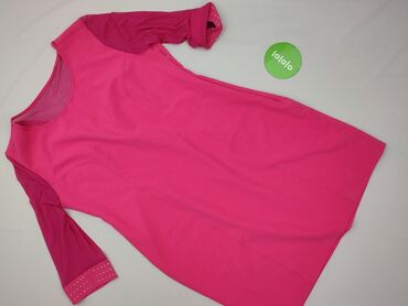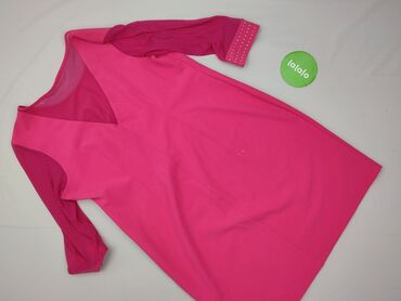 Ta sukienka damska w odcieniu intensywnego różu to elegancki element garderoby. Posiada okrągły dekolt i rękawy o długości 3/4, ozdobione subtelnymi kokardkami w tym samym kolorze. Zapięcie na zame...Stan: