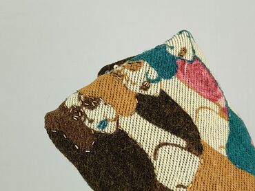 - Przód i tył z dużym, tkanym wzorem artystycznym: stylizowane postacie i kwiaty (róże i chabry) w intensywnych barwach; miejscami naszyte cekiny i koraliki dodające połysku.