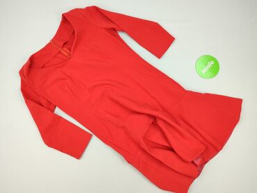 Sukienka damska w kolorze intensywnej czerwieni. - Fason: lekko rozszerzana (A-line), długość mini/przed kolano. - Rękawy: 3/4 z falbanką przy mankiecie. - Dekolt: okrągły. - Zapięcie: suwak z tył...Stan: