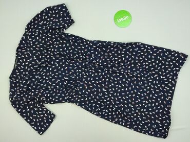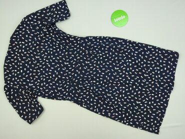 Sukienka damska, granatowa, kopertowa - Fason: kopertowy z dekoltem w kształcie V, talia podkreślona szeroką gumką, lekko rozkloszowany dół - Rękawy: krótkie, falujące motylkowe - Długość: mini/pr...