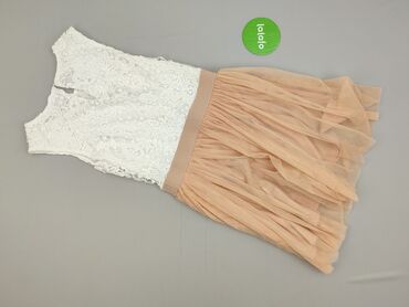 Sukienka damska, rozmiar M. Dwuczęściowy efekt: - góra: kremowa/śnieżnobiała koronka o kwiatowym wzorze, krótki rękaw, zaokrąglony dekolt, delikatne lamowanie przy krawędziach - dół: rozkloszowana ...