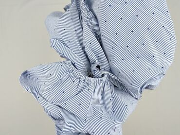 - Kolor/wzór: biało‑niebieskie, drobne pionowe paseczki z granatowymi kropkami