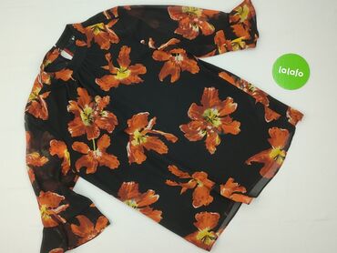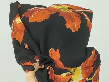 - Print: duże, malarskie kwiaty w odcieniach pomarańczu i żółci na czarnym tle