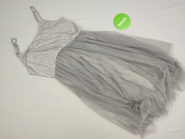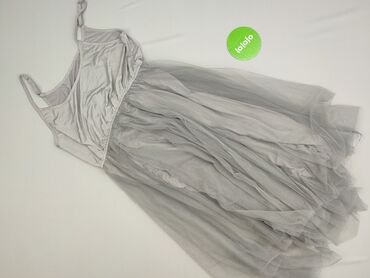 Sukienka damska bez rękawów w odcieniu szarości. Charakteryzuje się gładką górą i rozkloszowanym dołem wykonanym z tiulu, nadającym jej lekkości. Idealna na cieplejsze dni oraz różnorodne okazje, g...