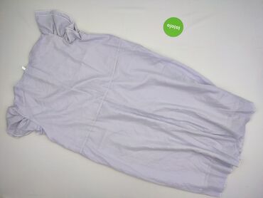 Sukienka damska, kolor jasny lawendowy/blekitny. - Krój: prosty, długość do kolan lub za kolano (midi), dekolt w kształcie litery V. - Rękawy: 3/4 z delikatnie rozszerzaną, marszczoną falbaną przy...