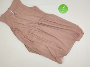 Sukienka damska bez rękawów w kolorze pudrowego różu. - Krój: rozkloszowany dół z kontrafałdami, dopasowana góra, okrągły dekolt. - Zapięcie: długi suwak z tyłu (kontrastowa taśma). - Długość: d...