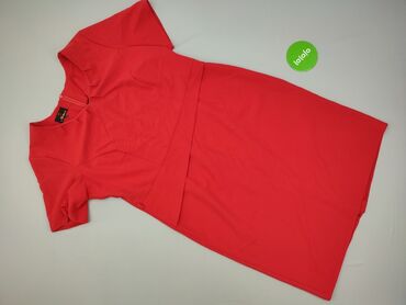 Sukienka damska, czerwona, rozmiar 42. - Krój: prosta, lekko zwężana, długość za kolano (tuba). - Rękawy: 3/4. - Dekolt: okrągły. - Materiał: 100% poliester – lekko elastyczny, o drobnej fak...