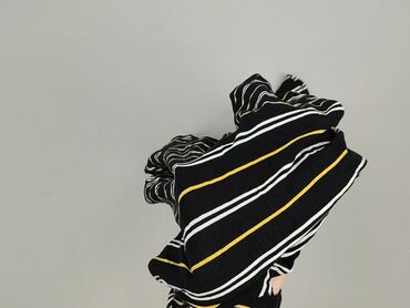 Sukienka F&F w paski - Model: dopasowana góra, lekko rozkloszowany dół, krótki rękaw - Wzór: czarno-białe paski ułożone w różnych kierunkach, optycznie wysmuklające sylwetkę - Dekolt: okrągły - Dł...