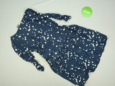 Granatowa sukienka w kropki – Chillim, rozmiar XS - Fason: lekko rozkloszowana, odcinana w pasie z elastyczną gumką - Dekolt: okrągły, z krótką listwą guzików (3 guziki) - Rękawy: krótkie - Wzór: ...