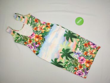 Sukienka damska na ramiączkach z kwiatowym printem - Krój: prosty, lekko zwężany ku dołowi, długość midi/przed kolano (zależnie od wzrostu) - Dekolt: okrągły, ramiączka wąskie - Wzór: gęsty, tropi...Stan: