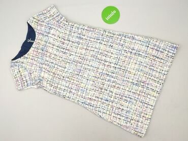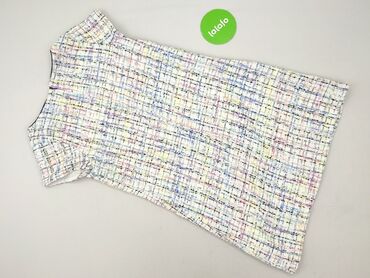 Sukienka damska bez rękawów, ołówkowa, w pastelowe wzory - Krój: dopasowany, długość do kolan, okrągły dekolt. - Wzór: połączenie cienkich pasków i roślinnego motywu; góra w odcieniach beżu z różow...
