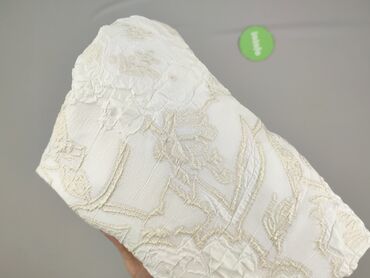 - Wzór i wykończenie: biała baza z wypukłym, złotym, kwiatowym żakardowym haftem; strukturalna faktura materiału