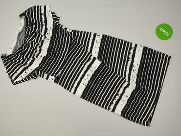 SUKIENKA SOLAR – rozmiar 38 - Fason: midi, prosty z regulacją w talii (sznurek do ściągania) - Dekolt: łódka - Rękawy: krótkie, opadające - Wzór: drobne poziome paski w odcieniach bieli i granatu/...
