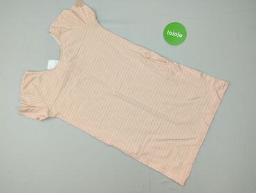 Sukienka damska, rozmiar M - Krój: prosty, długość za kolano, dekolt w serek - Rękawy: krótkie z falbanami; falbana również na dole sukienki - Wzór: złote, metaliczne kropki na pudrowo‑różowym tle...