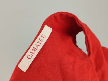 Czerwona sukienka damska marki Camaieu z długim rękawem i dekoltem w serek. Materiał sukienki ma delikatną fakturę. Rękawy i dekolt ozdobione są ozdobnymi przeszyciami. W pasie znajdują się troczki...