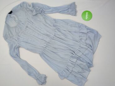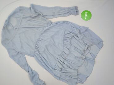 Sukienka damska Mohito Collection, rozmiar S. - Kolor: chłodny, jasny błękit - Fason: rozkloszowana mini z falbaną na dole, podkreślona talia - Rękawy: długie, lekko bufiaste - Dekolt: okrągły, z ...