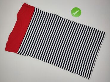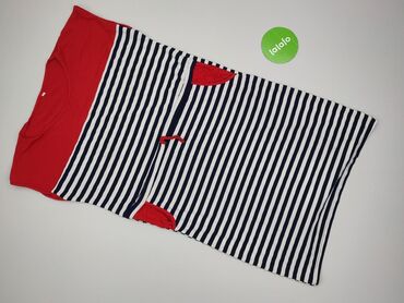 Sukienka damska w stylu marynistycznym - Fason: dopasowany, długość do kolan - Rękaw: krótki - Kolorystyka: granat, biel i czerwone akcenty - Wzór: poziome pasy (część pasów ma trójwymiarową, fakt...