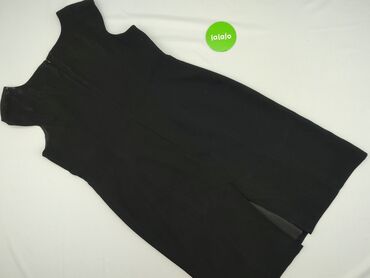 Czarna sukienka damska, bez rękawów, ołówkowa/etui. - Fason: dopasowany, z modelującymi cięciami, długość przed kolano - Dekolt: szeroki, łódkowy - Zapięcie: zamek błyskawiczny z tyłu - Materiał: ...