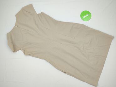 Sukienka damska bez rękawów – beżowa, ołówkowa - Fason: klasyczna sukienka ołówkowa, dopasowana do sylwetki - Dekolt: okrągły - Rękawy: brak (bezrękawnik) - Długość: przed kolano (mini/krótka) - Z...