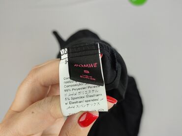 Sukienka ROMWE, damska - Kolor: czarny - Fason: mini/krótka, rozkloszowana od talii - Dekolt: hiszpański/opuszczane ramiona z elastyczną gumką i delikatną falbanką; dodatkowe cienkie ramiączka do ...Stan: