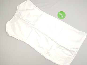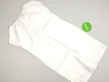 Sukienka damska bez rękawów, midi, w kolorach biały–błękitny–granat (blok kolorów). Góra w kolorze ecru/śmietankowym, podkreślona niebieskim pasem w talii, dół granatowy z delikatnie marszczonym wy...