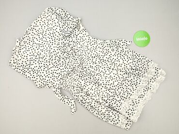 Sukienka damska w grochy - Kolor: biały w czarne kropki - Krój: ołówkowy/obcisły z marszczeniami i wiązaniem/krawatem z przodu, asymetryczna dolna część - Dekolt: okrągły - Rękaw: krótki, lekko op...