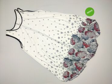Sukienka letnia na ramiączkach, w kwiatowy wzór - Kolor bazowy: biały/ecru - Wzór: duże, czerwone i bordowe kwiaty z zielonymi liśćmi - Krój: rozkloszowana, z falbanami na dole - Dekolt: kopertowy...