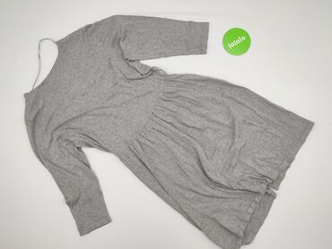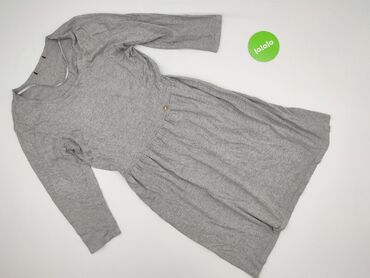 Szara dzianinowa sukienka z rękawem 3/4 - Krój: prosty, lekko dopasowany, długość przed kolano - Dekolt: okrągły - Rękawy: 3/4 - Kolor i wzór: melanż szarości - Materiał: miękka, średniej grubości...