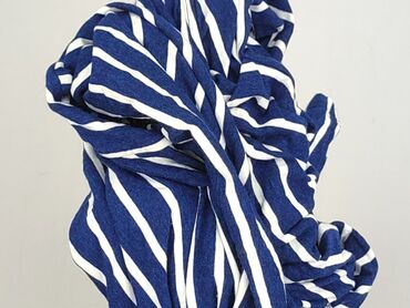 Sukienka w paski – biało-niebieska - Fason: luźna, z szeroką górą i rozszerzanym dołem, długość midi (za kolano), krótkie rękawy typu kimono - Wzór: pionowe/ukośne niebieskie paski na białym tle -...