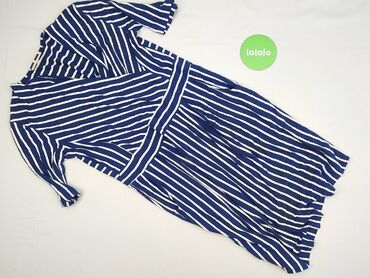 Sukienka damska WOMEN, rozmiar 38 - Krój: prosty, T-shirt dress, długość midi - Rękaw: krótki - Dekolt: okrągły - Wzór: poziome prążki/paski w odcieniach granatu i jasnego szarego - Materiał: dzia...