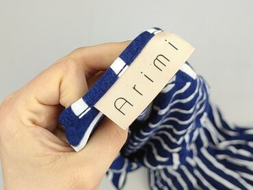 Sukienka w paski – biało-niebieska - Fason: luźna, z szeroką górą i rozszerzanym dołem, długość midi (za kolano), krótkie rękawy typu kimono - Wzór: pionowe/ukośne niebieskie paski na białym tle -...Sukienka Arimi w granatowo-białe paski