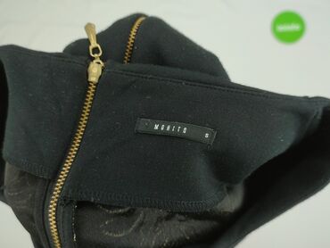 Sukienka MOHITO, rozmiar M - Kolor: czarny - Fason: ołówkowy, podkreślający sylwetkę, długość przed kolano - Rękaw: krótki - Dekolt: okrągły, zdobiony złotymi ćwiekami w kształcie kwadratów - Boki...
