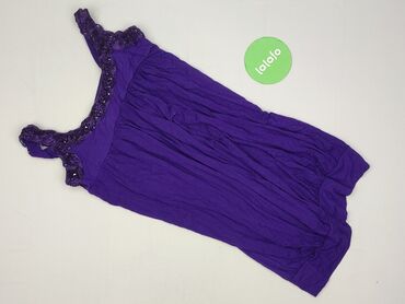 Fioletowa sukienka mini damska ozdobiona drobnym wzorem w białe i fioletowe kwiaty. Charakteryzuje się krótkim fasonem i okrągłym dekoltem. Sukienka posiada cienkie ramiączka, które są wszyte w dek...