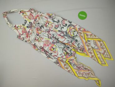 Sukienka damska H&M, bez rękawów, z kolorowym, kwiatowym nadrukiem ombre (odcienie bieli/koralowego/minty/błękitów/granatu). Krój dopasowany, długość do kolan. Okrągły dekolt z delikatnymi zakładka...
