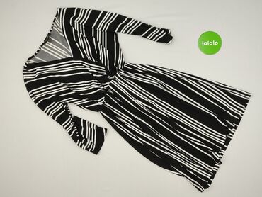 Idealna do biura i na wyjścia – kopertowy dekolt i marszczenie w talii nadają elegancji, a elastyczna tkanina zapewnia komfort. Klasyczne czarno‑białe pasy optycznie wydłużają sylwetkę.