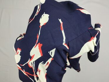 - Wzór: duże, malarskie kwiaty w odcieniach ecru z akcentami koralowymi na granatowym tle