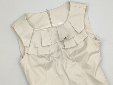 Sukienka damska bez rękawów, elegancka, w kolorze ecru/kremowym.
