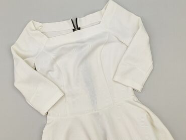 Biała sukienka o prostym kroju - Kolor: śmietankowa biel - Fason: dopasowany, delikatnie taliowany, długość mini/tuż przed kolano - Rękawy: 3/4 - Dekolt: łódka - Zapięcie: suwak z tyłu - Materiał:...Stan: