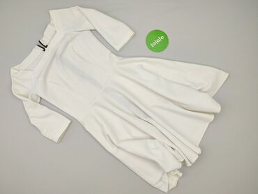 Biała sukienka o prostym kroju - Kolor: śmietankowa biel - Fason: dopasowany, delikatnie taliowany, długość mini/tuż przed kolano - Rękawy: 3/4 - Dekolt: łódka - Zapięcie: suwak z tyłu - Materiał:...