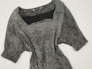 Sukienka dzianinowa, grafitowa melanż. - Krój: lekko rozszerzany ku dołowi (A-line), długość przed kolano. - Rękaw: 3/4. - Dekolt: okrągły. - Materiał: miękka, elastyczna dzianina o średniej grubo...Stan: