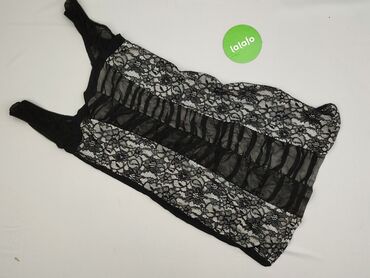 - Materiał: elastyczna tkanina z transparentnymi wstawkami z plisowanego tiulu; front i boki zdobione czarną, kwiatową koronką na jasnym podkładzie