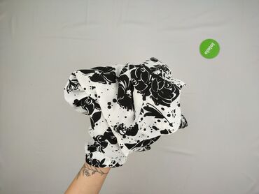 Sukienka damska z krótkim rękawem, ołówkowa/etui, czarna z dużym białym, roślinnym nadrukiem na całej długości przodu i tyłu. Dekolt okrągły, lekko marszczony z przodu. Tkanina elastyczna, miękka i...
