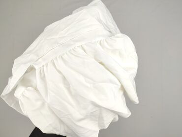 - Materiał: lekka, przewiewna tkanina w kolorze czystej bieli (na zdjęciach widać strukturę i marszczenia).