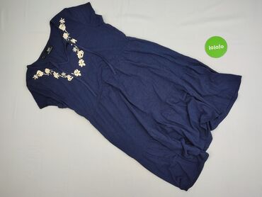 Sukienka damska midi w kwiaty - Kolor: granatowy z drobnym, wielobarwnym nadrukiem kwiatowym (odcienie żółtego, koralowego, niebieskiego, zieleni). - Krój: długość midi, lekko rozszerzana ku dołow...Stan:
