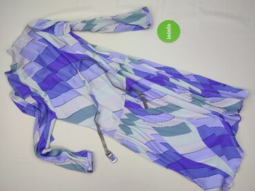 Sukienka damska w kwiaty – kolor lawendowy/fioletowy z wielobarwnym, roślinnym nadrukiem. - Krój: bez rękawów, z dekoltem w łódkę; dopasowana w talii, z dołączonym paskiem do wiązania. - Długość: ...